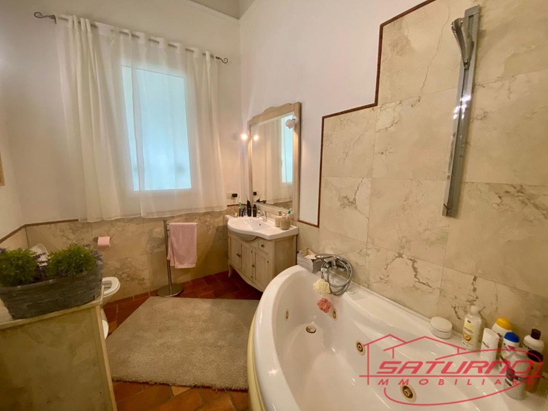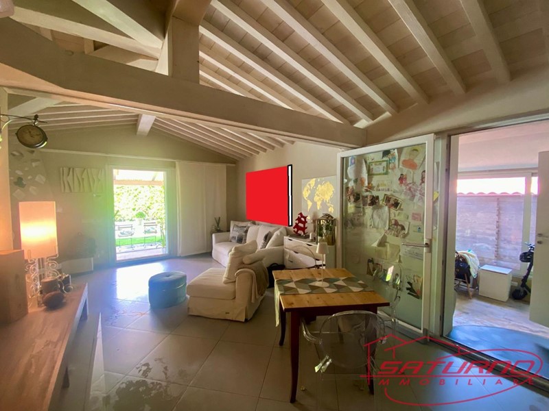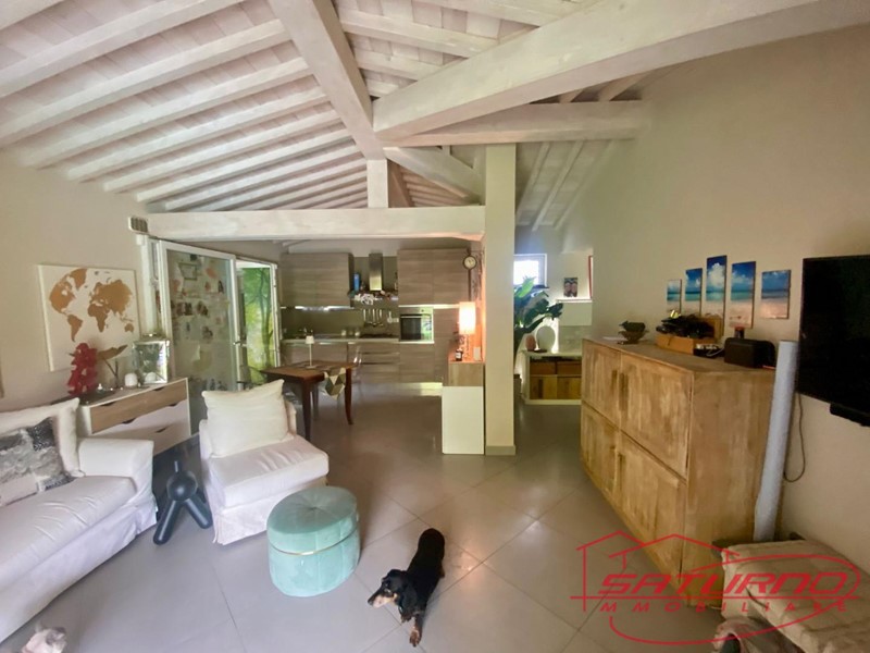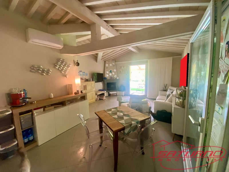 La villa principale si sviluppa per 115 mq tutti sul piano terra rialzato e si compone di ingresso, ampio soggiorno/pranzo con cucina open space con camino ed accesso al bellissimo porticato veranda che si affaccia sul giardino e sulla piscina, poi abbiamo un bagno, la camera princiapale,ripostiglio, ritornando all'ingresso troviamo alla sinistra la camera matrimoniale con bagno en suite.Aria condizionata canalizzata, termoautonomo a termosifoni a metano, infissi pvc con doppi vetri,CAPPOTTO TERMICO.