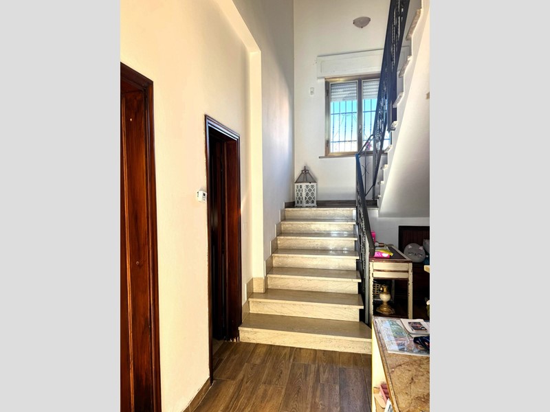 In zona strategica e vicina a tutti i servizi, vendesi abitazione indipendente sviluppata prevalentemente al piano primo, con resede e ampio giardino su tre lati e doppio accesso carrabile da due strade diverse (uno dotato di cancello automatico). Si accede all’abitazione dal piano terra, tramite loggiato coperto, dove troviamo: ingresso con ripostiglio sottoscala, bagno con doppia finestra, completamente ristrutturato con vasca e doccia idromassaggio, ulteriore ampio ripostiglio. Al piano terra è stata realizzata la vespaio areato (igloo) per un migliore comfort abitativo. Tramite un ampio vano scala finestrato si raggiunge il piano primo, composto da: cucina con grande ripostiglio/dispensa, sala pranzo con terrazzo, soggiorno, disimpegno notte, due camere matrimoniali (una con terrazzo), una camera doppia, corridoio, bagno recentemente ristrutturato con doccia e finestra. Già predisposta con due ingressi indipendenti, ideale per suddivisione in due appartamenti distinti (soluzione genitori/figli o investimento). L'immobile è dotato di infissi nuovi con doppio vetro e zanzariere, inferriate alle finestre del piano terra e vano scala, sistema di allarme. Esternamente l'immobile offre ampi spazi esterni godibili con annesso in legno con pozzo e lavanderia e pergolato in legno con illuminazione. Abitazione perfetta per famiglia, per chi desidera privacy senza rinunciare ai servizi e ottima soluzione per due nuclei familiari (genitori/figli). Una proprietà rara, dove privacy e comodità si incontrano in un equilibrio perfetto. Rif. 5909