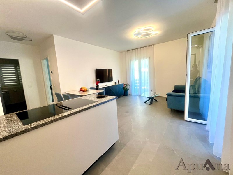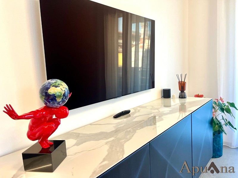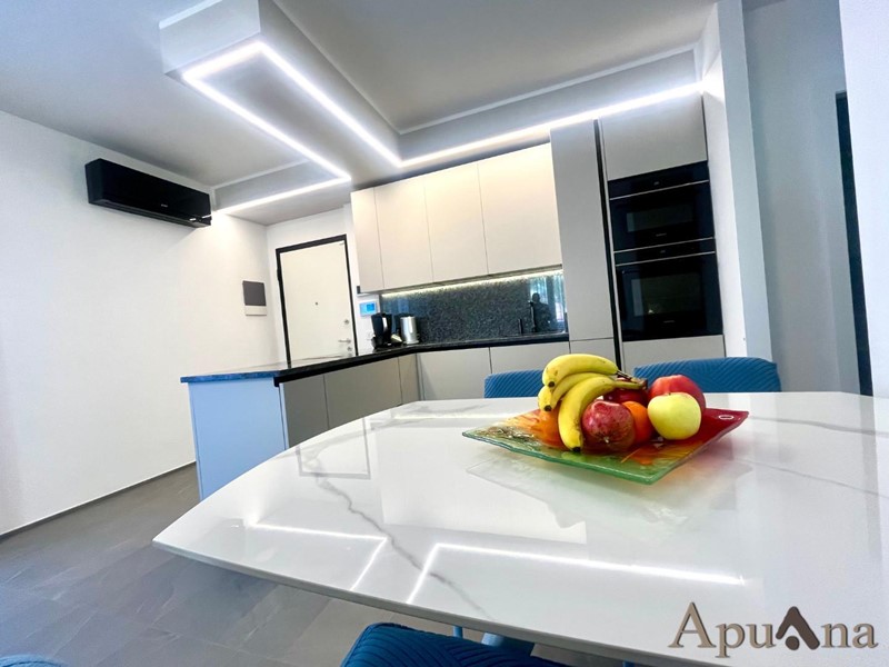 L’immobile si compone di: ampio soggiorno con cucina a vista e due terrazze abitabili, disimpegno notte, due camere da letto e bagno.
