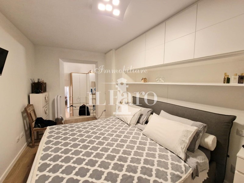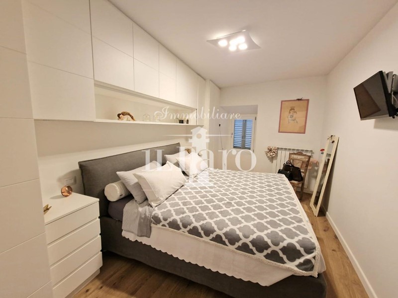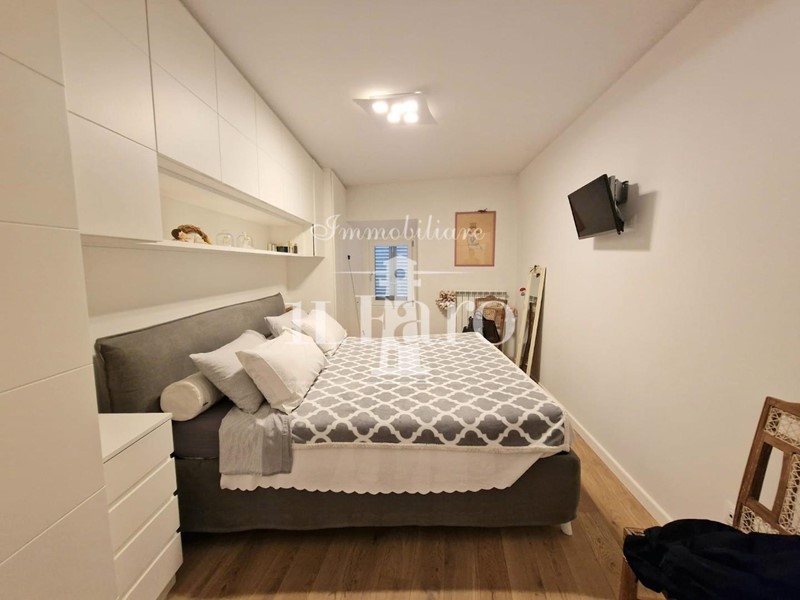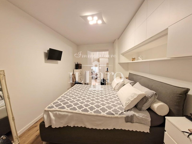 L'abitazione è così composta: Entrando ci accoglie una grande zona giorno doppia con porte finestre e balconi panoramici, proseguendo troviamo il cucinotto attrezzatissimo; la zona notte è invece composta da due camere da letto entrambe matrimoniali ( una attualmente utilizzata come prolungamento della zona giorno ) doppi servizi e un piccolo studio.