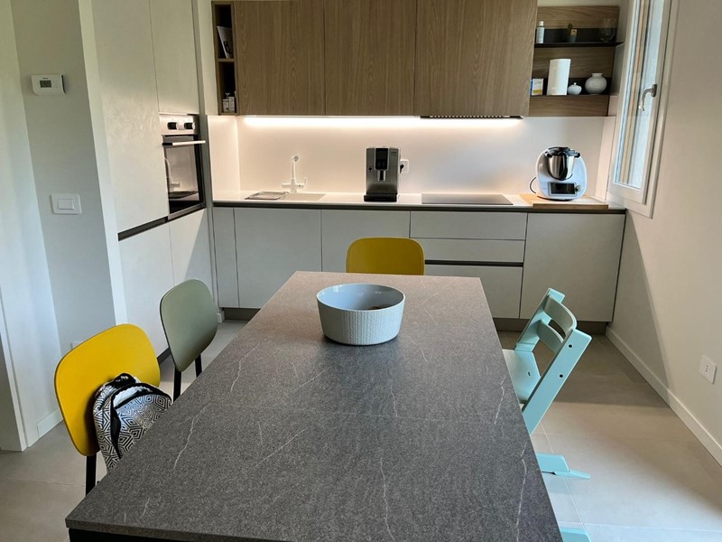 La cucina è abitabile, pensata per chi ama cucinare, ricevere, o vivere i piccoli riti domestici con calma e piacere. I due bagni finestrati, entrambi dotati di box doccia, sono moderni, eleganti e funzionali, pensati per offrire comfort e bellezza in ogni gesto quotidiano.