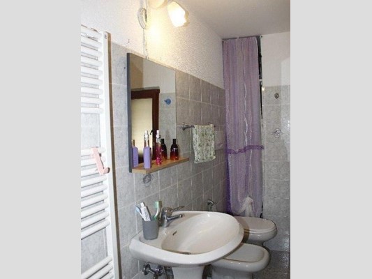 Rosignano Solvay. Zona di Crocetta alta. Appartamento in fabbricato quadri familiare, ristrutturato, posto al piano leggermente seminterrato rispetto al piano stradale, da cui si accede mediante un largo accesso carrabile pavimentato che porta sia all'abitazione che all'unico garage (di fatto mai usato come tale) e posto accanto ad essa. In unico ambiente di 24 mq troviamo un salottino, cucina/pranzo; disimpegno notte, ripostiglio, ampia camera matrimoniale ( 22mq) , camera doppia (15mq) e bagno. Termo singolo a metano con caldaia nuova, infissi esterni in PVC e interni in legno con doppi vetri, zanzariere, impianto di climatizzazione. Assenza di condominio. Pur occupato temporaneamente, disponibilità in tempi brevia al rilascio