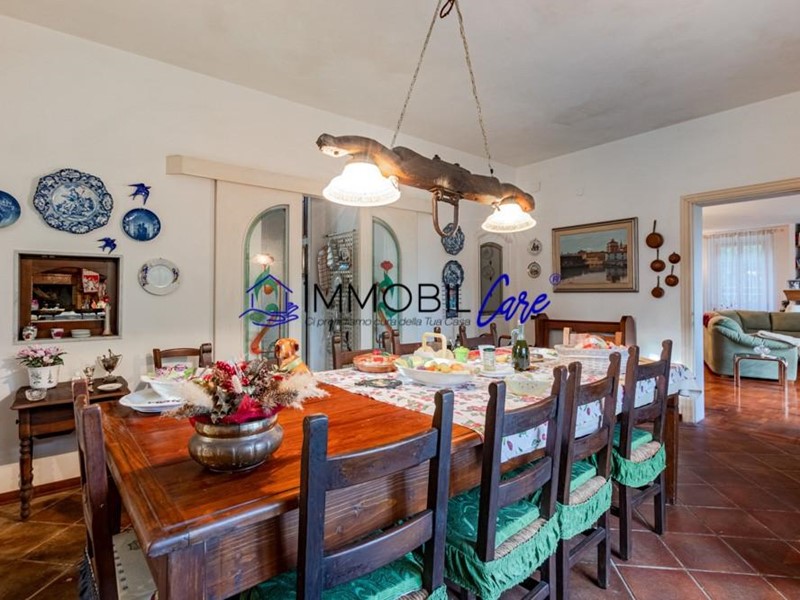 A seguire, una sala da pranzo di charme e una cucina abitabile, ampia e funzionale, completata da locali di servizio – dispensa, ripostiglio e bagno , pensati per una quotidianità pratica e piacevole.
