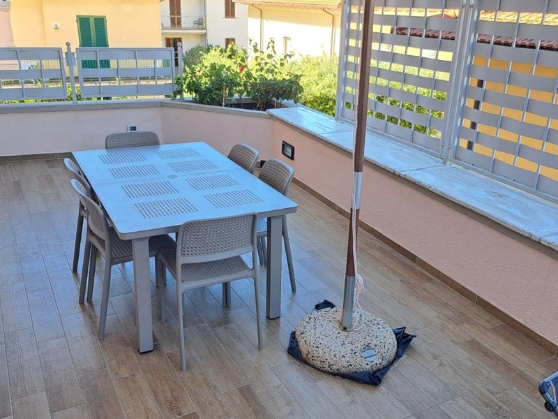 Castiglioncello a 70 mt. Dal mare appartamento al piano primo al quale si accede da scala interna composto da ingresso, soggiorno con angolo cottura e grande e bellissima terrazza per pranzi e cene all’aperto, ripostiglio, camera matrimoniale, bagno, termo autonomo a metano e climatizzatore, con annessa cantina al piano terra.
