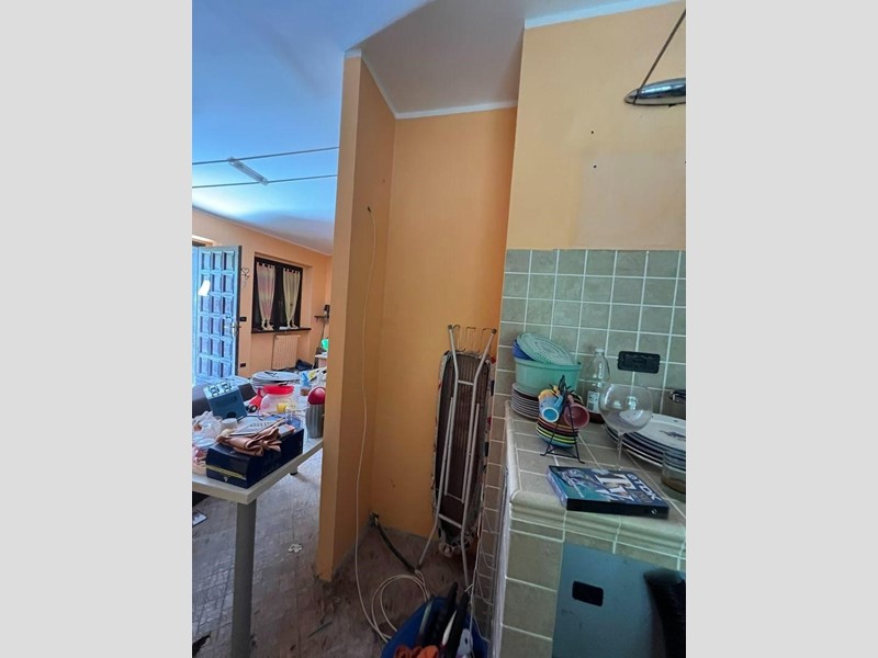 Alloggio al piano terra (1 F.t) ambiente unico ricavato dall'accorpo di due camere con la cucina, altra camera bagno disimpegno e veranda esterna con annesso giardino privato e cantina al piano interrato oltre autorimessa