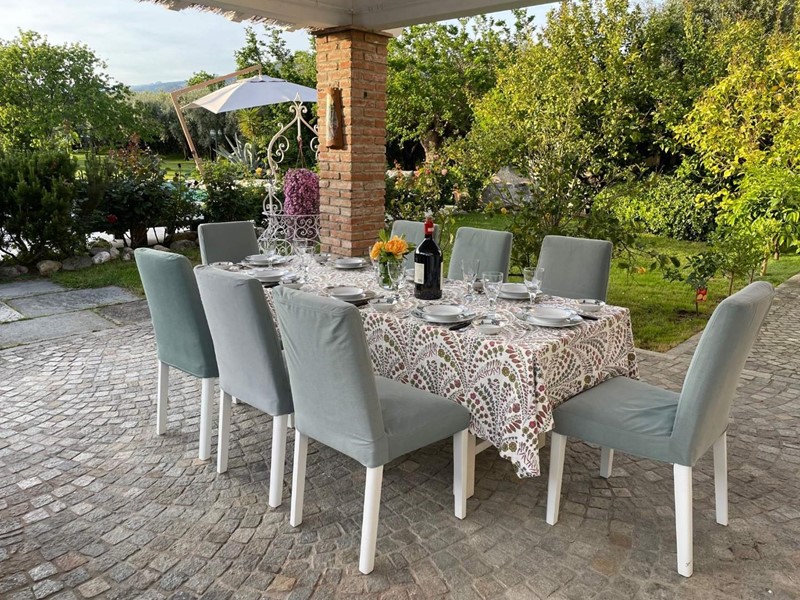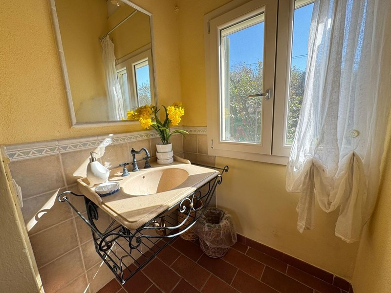 Il casale è composto da una spaziosa cucina completamente attrezzata, accogliente soggiorno, cinque camere matrimoniali e cinque bagni, garantendo ampi spazi e il massimo comfort per famiglie o gruppi di amici. All’esterno, un elegante portico coperto si affaccia sulla splendida piscina di 130 mq rivestita in mosaico, dotata di solarium e vasca idromassaggio riscaldata con cinque postazioni e temperatura regolabile fino a 39°C — ideale per momenti di relax in ogni stagione.