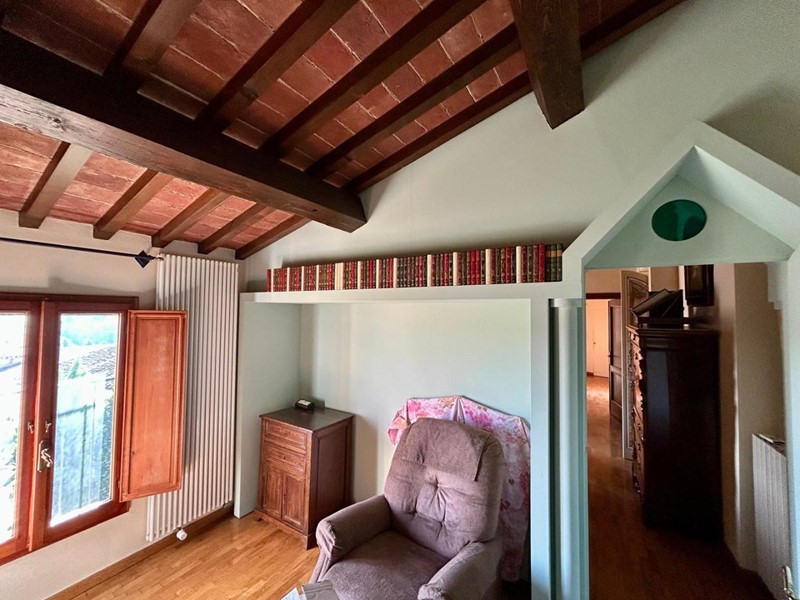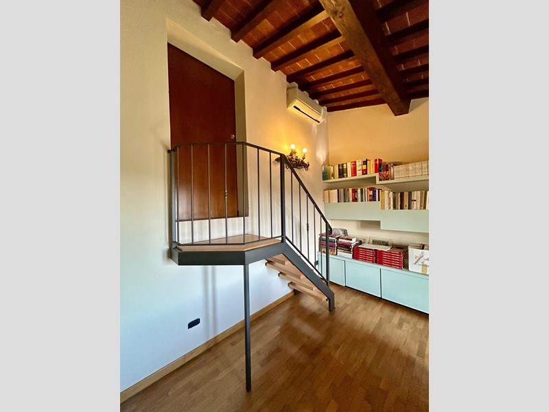 Il piano secondo ospita una zona notte riservata e silenziosa, con una camera padronale, uno studio luminoso, un bagno e locali accessori che possono essere adattati alle più diverse esigenze. Da qui si accede alla meravigliosa loggia panoramica e alla terrazza, da cui lo sguardo si perde tra i tetti di San Miniato e il paesaggio circostante, in un’atmosfera di pace e bellezza senza tempo.