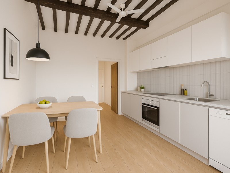 Le foto arredate sono rendering che mostrano come potrebbero apparire gli ambienti dopo la ristrutturazione.