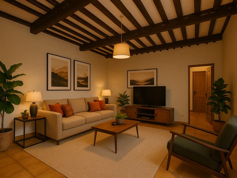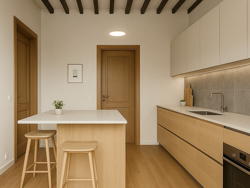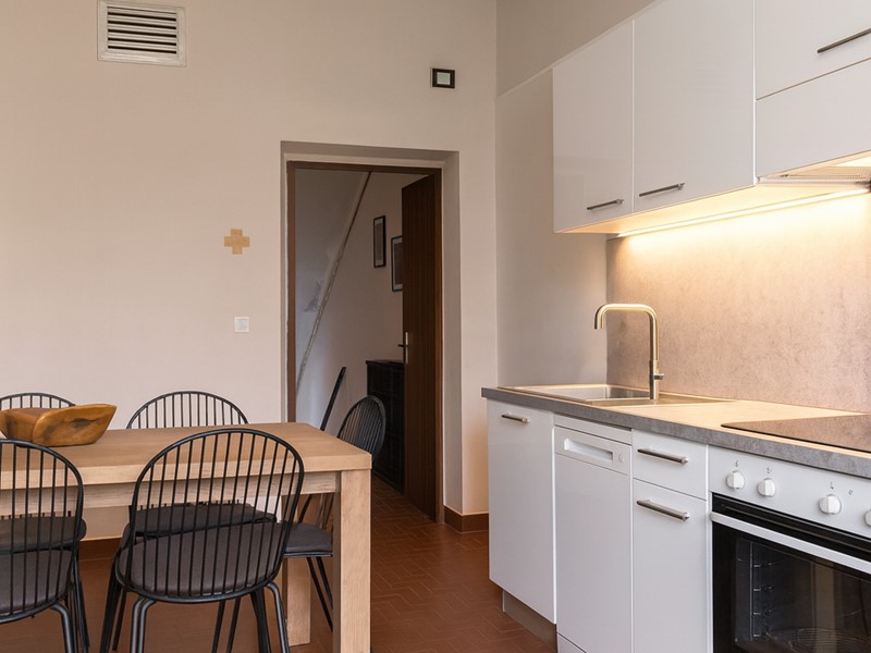 L’ingresso si apre su una cucina abitabile che accede direttamente all’ampia terrazza, perfetta per cene all’aperto in totale privacy. Completano la zona giorno un luminoso soggiorno, mentre la zona notte comprende una camera matrimoniale, uno studio, un ripostiglio e un bagno.