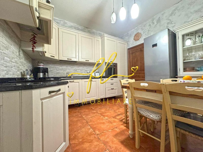 L’immobile si compone di: Ingresso in corridoio, Ampia cucina abitabile con veranda, Luminoso salone con doppia finestra, Camera matrimoniale, Camera media, Due camere singole e Bagno con finestra.