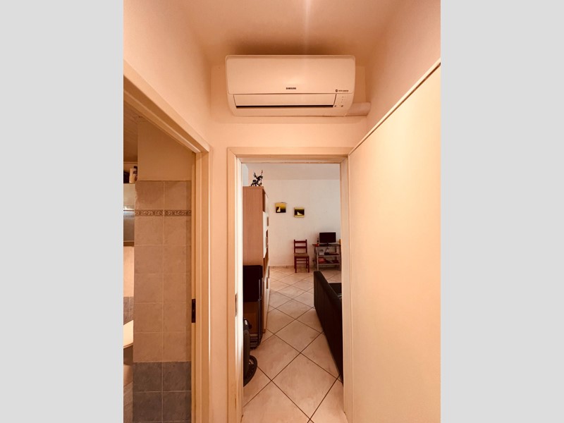 L’appartamento si compone di una zona cucinotto separata, dalla quale si accede al soggiorno, dotato di accesso diretto alla terrazza esterna. Proseguendo lungo il corridoio, dove è installato il condizionatore d’aria a servizio della zona notte, si raggiungono il bagno e le due camere matrimoniali, anch’esse dotate di accesso esterno: una sulla terrazza principale e l’altra su un piccolo affaccio sul retro dell’edificio.