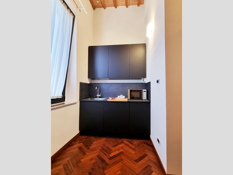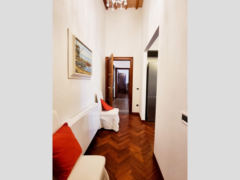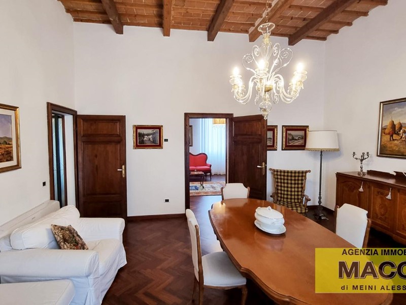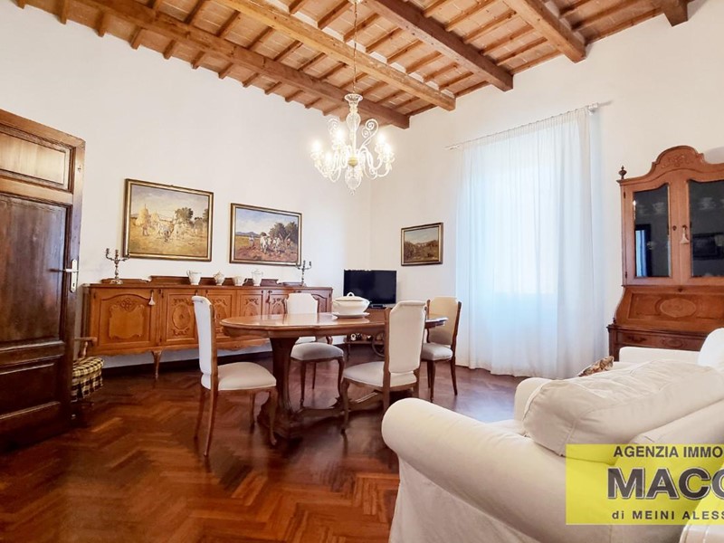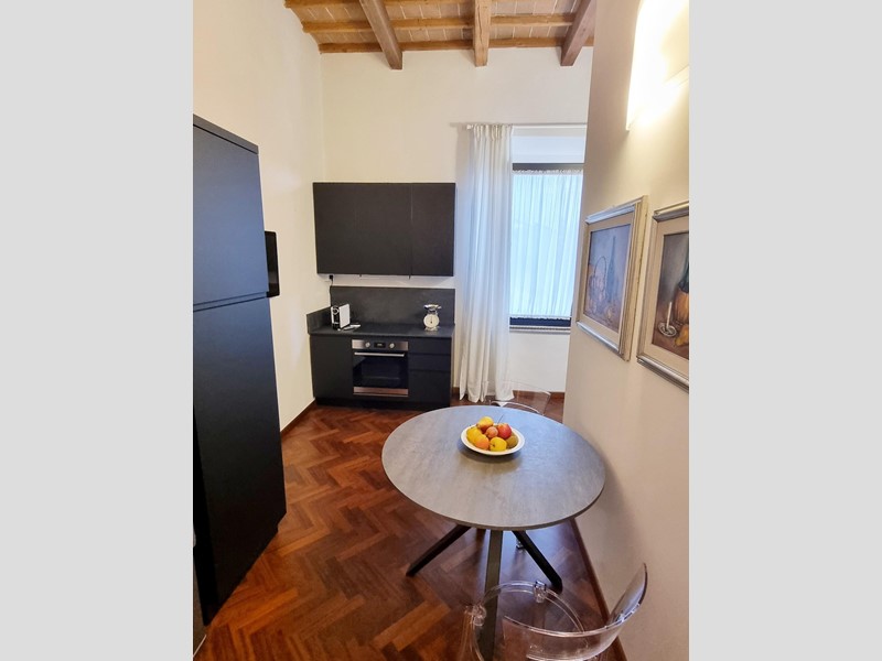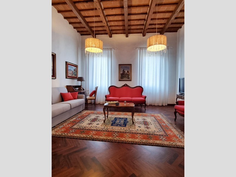 Located within a splendid period building in Liberty style, a charming and uniquely characterful apartment is offered for sale—perfect for those seeking refined and carefully curated spaces. The apartment has been completely renovated to a high standard, respecting the traditional Tuscan rustic style, with beautiful finishes and accessories (exposed wooden beams and terracotta ceiling tiles, flooring partly in herringbone parquet and partly in original decorated terrazzo, double-glazed windows, induction kitchen, new heating/cooling radiators, and furnishings included in the price, except for some personal items, etc.).