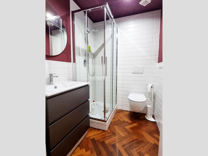 L’appartamento è stato oggetto di un attento intervento di ristrutturazione che ha valorizzato elementi storici come travi a vista e pavimenti originali, mantenendo l’atmosfera autentica dell’epoca ma con tutti i comfort moderni.