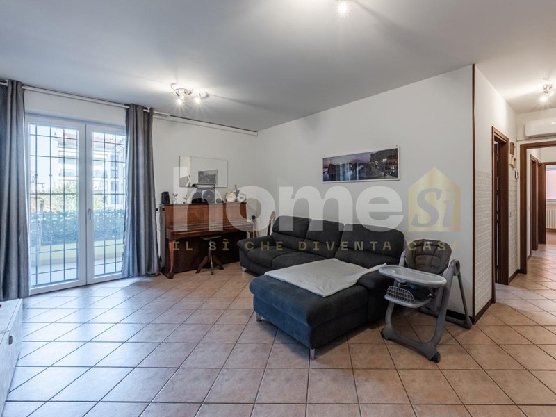 Entrando, si viene accolti da una sala ampia e luminosa, un ambiente conviviale e perfetto per accogliere ospiti o rilassarsi in totale comfort. Da qui si accede al balcone, ideale per godersi momenti di tranquillità all’aperto.
