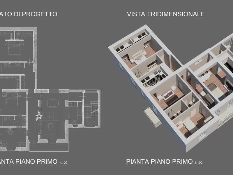 VENDESI in zona tranquilla a 200 mt dal centro, in contesto di villa bifamiliare, appartamento con ingresso indipendente, posto al primo ed ultimo piano, in fase di completa totale ristrutturazione con finiture personalizzabili, sviluppato per 150 mq oltre a cantina e piccol giardino di 25 mq al piano terra. L'immobile ha una piccola resede privata di 25 con ingresso solo perdonale che da accesso alla casa dove al piano terra troviamo l'ingresso che da accesso alla scala privata che conduce al piano primo dove troviamo l'appartamento composto da ingresso, ampio soggiorno con balcone, cucinotto, camera matrimoniale padronale con guardaroba e bagno privato, altra camera matrimoniale con guardaroba e balcone, camera singola, ed altro bagno. Ritornando sul vano scale privato salendo un ultima rampa, si arriva alla soffitta ad uso ripostiglio non praticabile in piedi, che si estende per tutta la superficie del sottostante apparamento. Invece al piano seminterrato sempre con ingresso dalla scala privata abbiamo una cantina dic rica 10 mq.