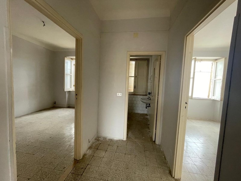 L'appartamento posto al piano primo lato destro salendo le scale, si compone di ingresso, tre vani oltre cucina, bagno e balconi.