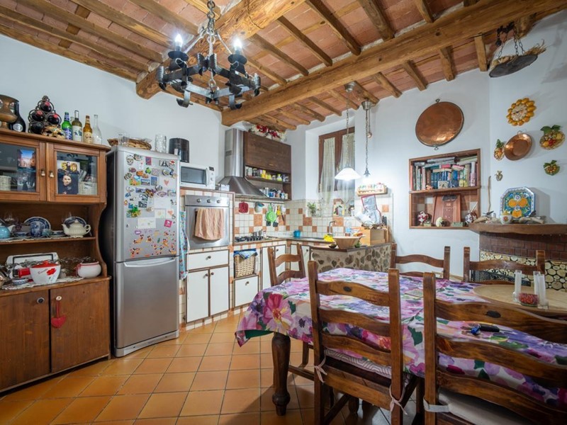 L'immobile è disposto su 3 livelli , al PT troviamo l'ingresso in soggiorno, cucina abitabile con camino, ripostiglio sottoscala.