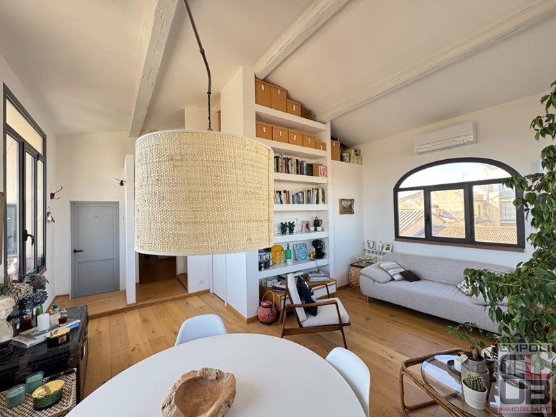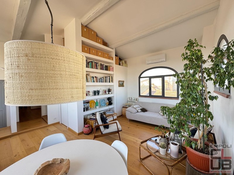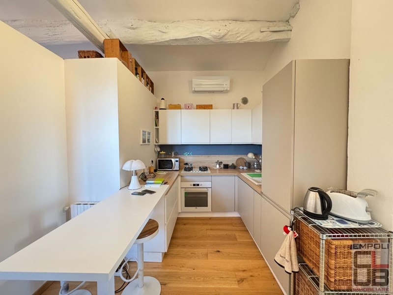 CAPOLUOGO - Empoli - Rif. F/0755 - NOSTRA ESCLUSIVA - LOFT DI MQ 60 CIRCA, POSTO AL QUARTO ED ULTIMO PIANO DI UN SIGNORILE PALAZZO DEL CENTRO STORICO RISALENTE AGLI ANNI 1600/1700, BARICENTRICO FRA PIAZZA FARINATA DEGLI UBERTI IN CUI E' UBICATA LA COLLEGIATA DI S. ANDREA, E PIAZZA DELLA VITTORIA IN CUI SPICCA PER BELLEZZA LA NOTA DEA BRONZEA DELLA VITTORIA . Unità immobiliare "unica" ristrutturata nel 2023 con una delicatezza che ha saputo unire il fascino del passato alla freschezza del design contemporaneo. Attualmente suddiviso in 2,5 vani (realizzabile facilmente il terzo) con relativi disimpegno e servizio igienico. L'ingresso all'appartamento conduce ad una prima zona (urbanisticamente camera; nell'uso soggiorno) letteralmente inondata di luce naturale che vi giunge attraverso ben 5 grandi finestre che si affacciano sulla città, avvolgendo ogni angolo di un’atmosfera calda e accogliente. Un disimpegno "sfumato" conduce al servizio igienico e ad una seconda zona (urbanisticamente cucina-soggiorno) in cui è presente la cottura con penisola studiata ad hoc e a seguire, separata, la zona notte. Un ambiente che invita alla convivialità e alla fantasia creativa. I materiali sono scelti con cura: travi antiche a vista bianche ed un contorno che evoca lo lo stile "shabby chic British/USA". Pareti dalle superfici lisce, soffitti alti con travi a vista, un equilibrio perfetto tra il carattere storico e la modernità minimalista. La sensazione è quella di un rifugio luminoso, dove ogni dettaglio contribuisce a creare un ambiente elegante, spazioso e ricco di personalità. Un appartamento che sa di storia, ma che vive nel presente, pronto a diventare un luogo di momenti unici. Classe energetica: G ipe 160.00. Euro 140.000,00