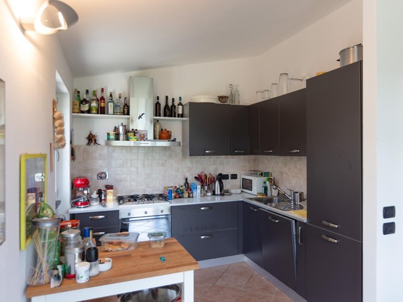 Al primo piano, la zona giorno luminosa con sala e cucina, due camere (una matrimoniale e una doppia), bagno con finestra e ripostiglio.