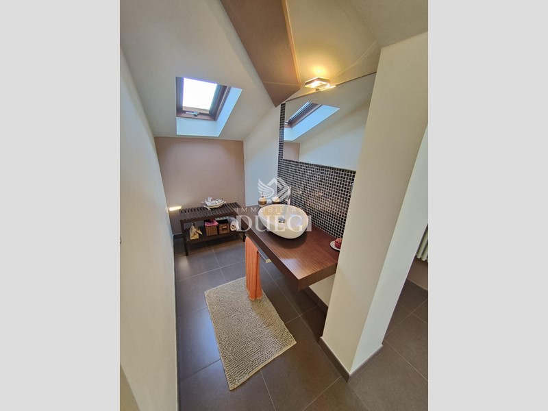 Salendo la scala interna si arriva alla zona mansarda con gradevoli altezze dove troviamo disimpegno,bagno completo con vasca ed un'altra stanza jolly da adibire a camera,studio,sala giochi o quant'altro a seconda delle esigenze ed ampio ripostiglio sottotetto.