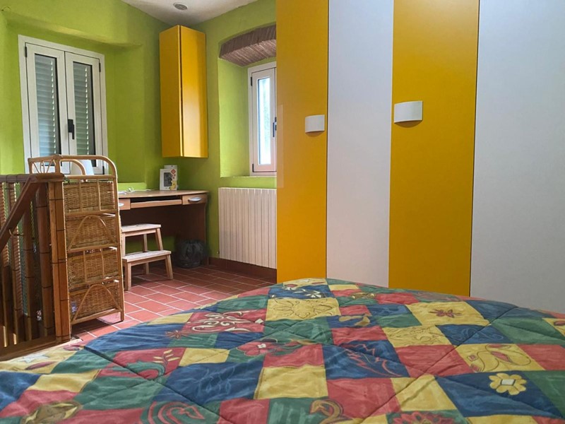 Una scala in legno conduce al primo piano, dove troverete una cameretta di passo o uno studio, facilmente disimpegnabile secondo le vostre esigenze. La camera matrimoniale, luminosa, promette notti serene in un ambiente intimo e confortevole.