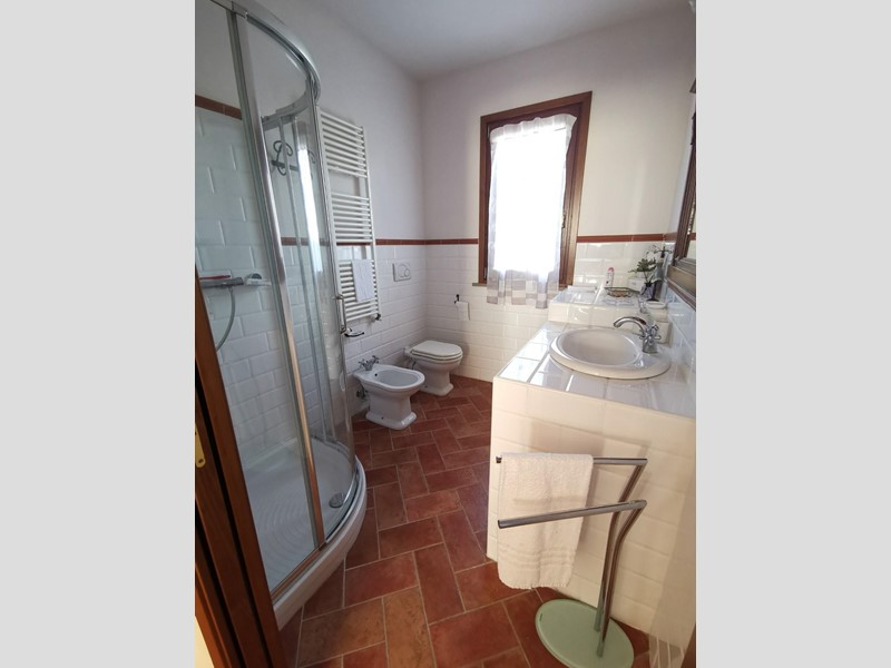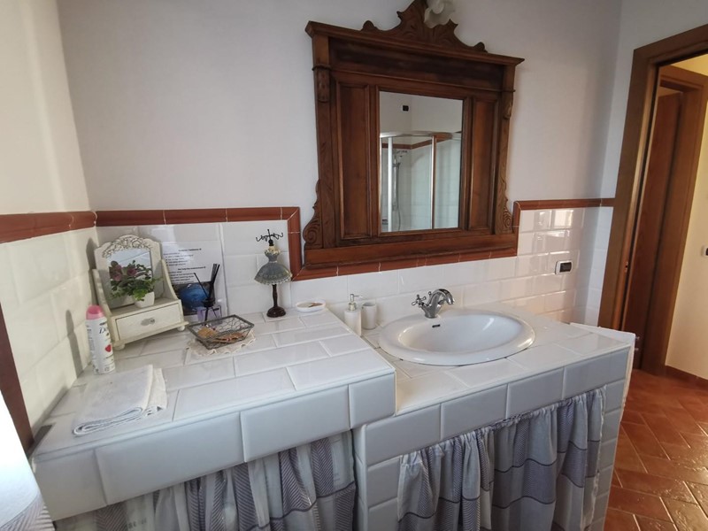 Tutta la proprietà sovrasta un poggio interamente di proprietà con oltre 350 piante di olivo, il tutto ben curato. Completa la proprietà il garage al piano seminterrato proprio sotto l’abitazione importante per riporre attrezzi agricoli o creare una piccola dependance.