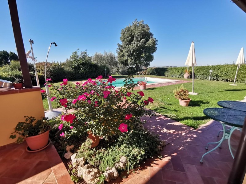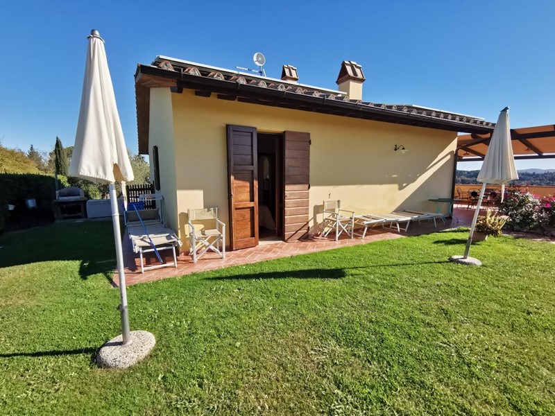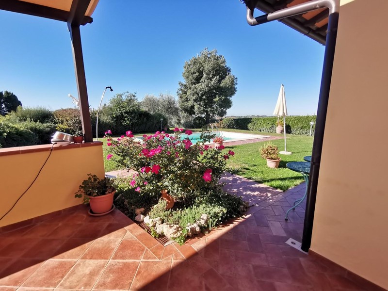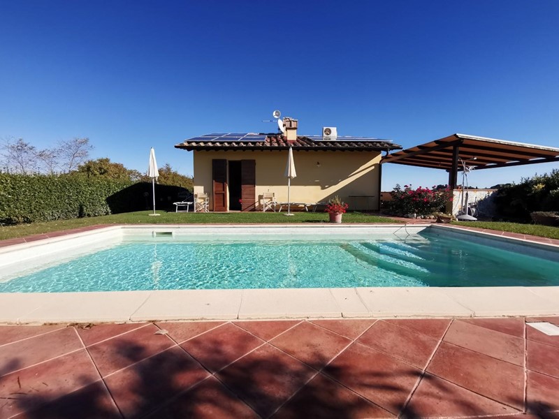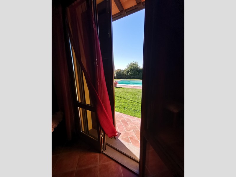 Da cancello elettrico si accede alla stradina sterrata che, dopo pochi metri, conduce all’abitazione la quale si sviluppa come un villino ad un solo piano fuori terra in stile rustico toscano. Dal grazioso porticato anteriore si accede all’ampio soggiorno con camino; poco più in là l’angolo cottura con grande tavolo per accogliere gli ospiti anche nella stagione invernale, disimpegno della zona notte da cui si accede al bagno in stile e due camere da letto matrimoniali di cui una con accesso diretto al giardino. Terrazzo panoramico coperto di circa 20mq con una vista a perdita d’occhio sulle splendide colline dove è possibile fare colazione o pranzare all’aperto nelle belle giornate. Giardino principale con una spettacolare piscina ideale per rinfrescarsi nelle giornate estive con gli amici o nella privacy totale che il posto offre da cui si può godere di un magico tramonto.