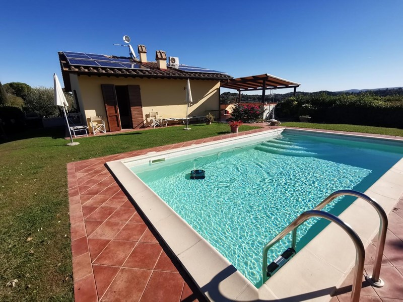 Rif. 968 - A Palaia, tranquillo comune tra le colline toscane, proponiamo in vendita una splendida villetta singola con piscina che domina un poggio ad uliveta e bosco con vista mozzafiato.