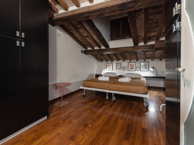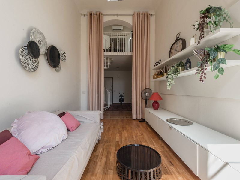 Historic center: iconic apartment of the city of Pisa, located in a historic building in the heart of the city center. This is a loft divided into two levels with a separate bedroom. Very charming traditional entrance with a view of the church of San Michele in Borgo Stretto. Open living room with glimpses of the exposed mezzanine. Kitchen located on the upper level with a disappearing architectural division and separate bathroom. Double bedroom with double bed. Custom-made furniture, characteristic objects and generous spaces make this apartment a true jewel of the historic center. Available for short periods. Possibility of four beds. For information and visits Andrea 3391878399