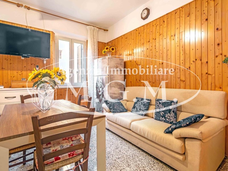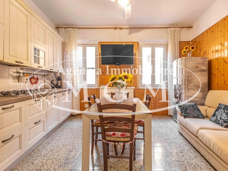 Salendo al primo piano, troviamo una luminosissima zona giorno composta da una cucina-pranzo con doppia finestra e da un ampio soggiorno, anch’esso con doppia finestra: un dettaglio raro e molto apprezzato nelle abitazioni del borgo.