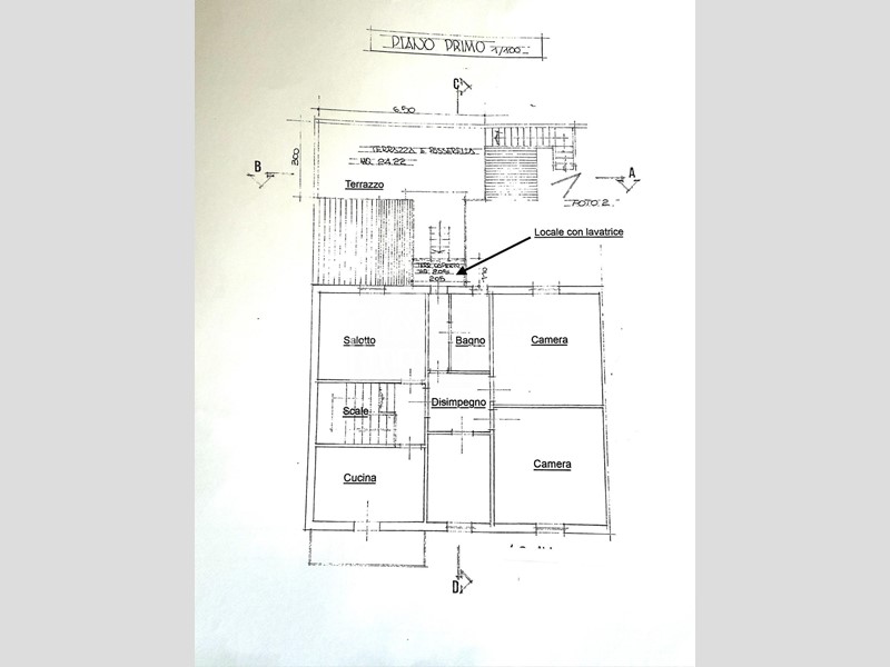 Da resede privato si accede all'abitazione composta: al piano terra ampio ripostiglio, tramite scala interna si sale al piano primo dove troviamo il soggiorno, una cucina abitabile con terrazzo, due camere da letto matrimoniali, un servizio igienico finestrato ed una terrazza di circa 25 mq.