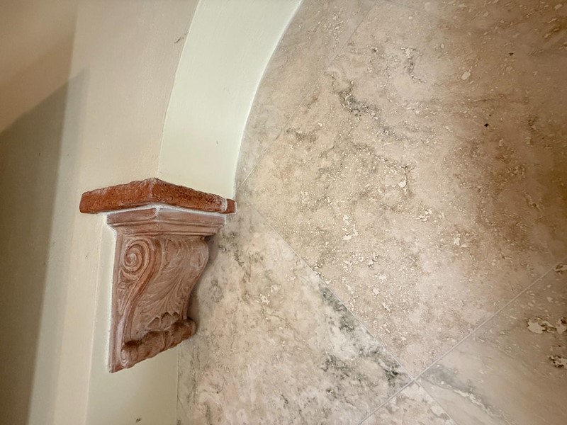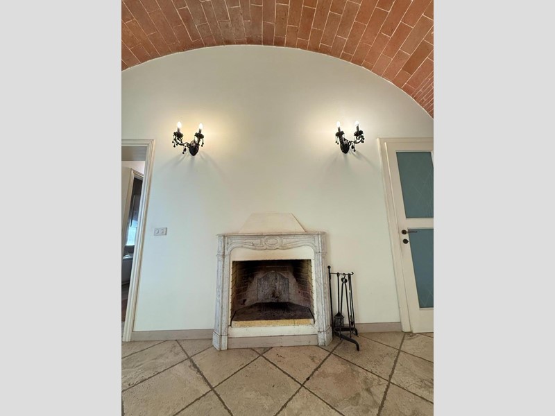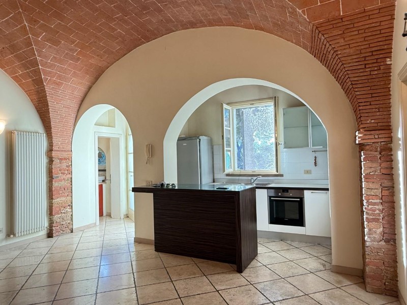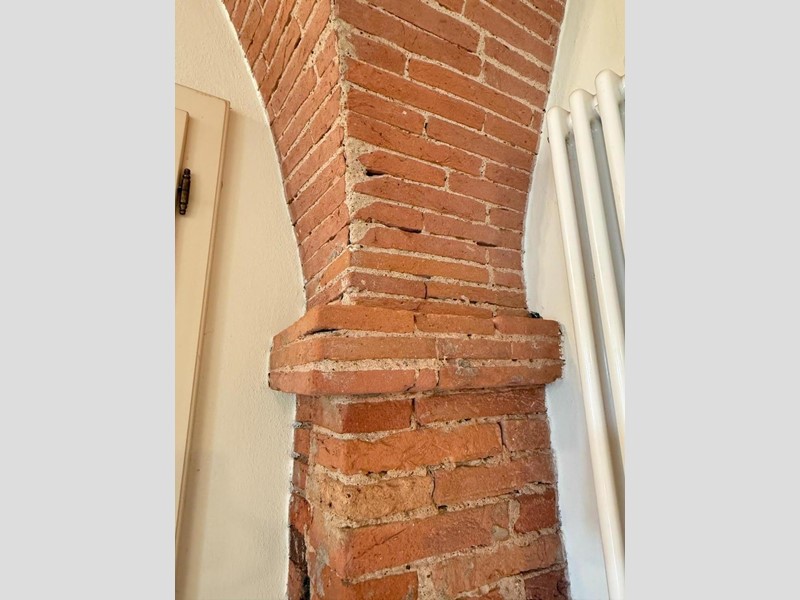 All’interno, l'appartamento si apre su una luminosa zona living caratterizzata da volte a vela in mezzane sabbiate, archi e un camino d’epoca perfettamente funzionante, che rendono l’ambiente caldo e accogliente. La cucina in stile americano si integra armoniosamente con l’ampia zona giorno.