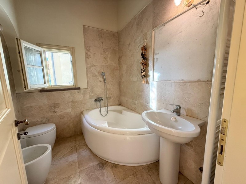La zona notte ospita due camere matrimoniali – di cui una molto ampia – con pavimenti in parquet, e un elegante bagno finestrato in travertino, dotato di vasca. Completa la casa un secondo bagno con doccia all’ingresso, moderno e funzionale.