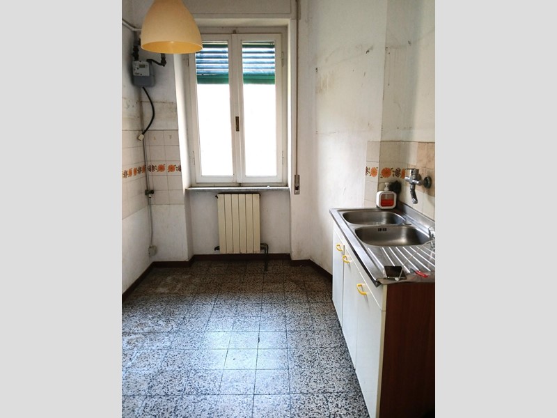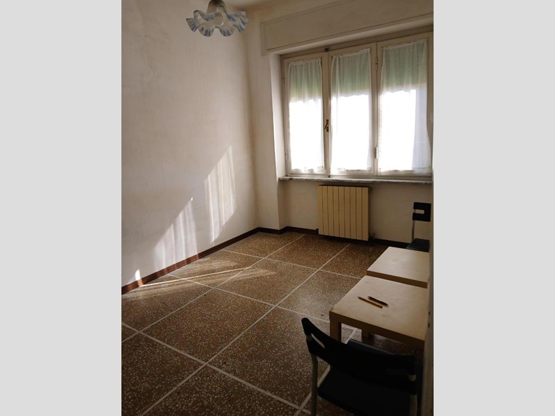 L’immobile, sviluppato interamente su un unico livello, si compone di ingresso in disimpegno, soggiorno, cucina semi-abitabile, due camere matrimoniali, studio o cameretta con balcone (possibilità di ricavare 3-4 camere) e bagno finestrato.