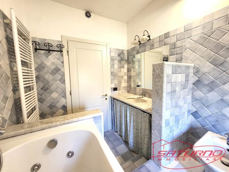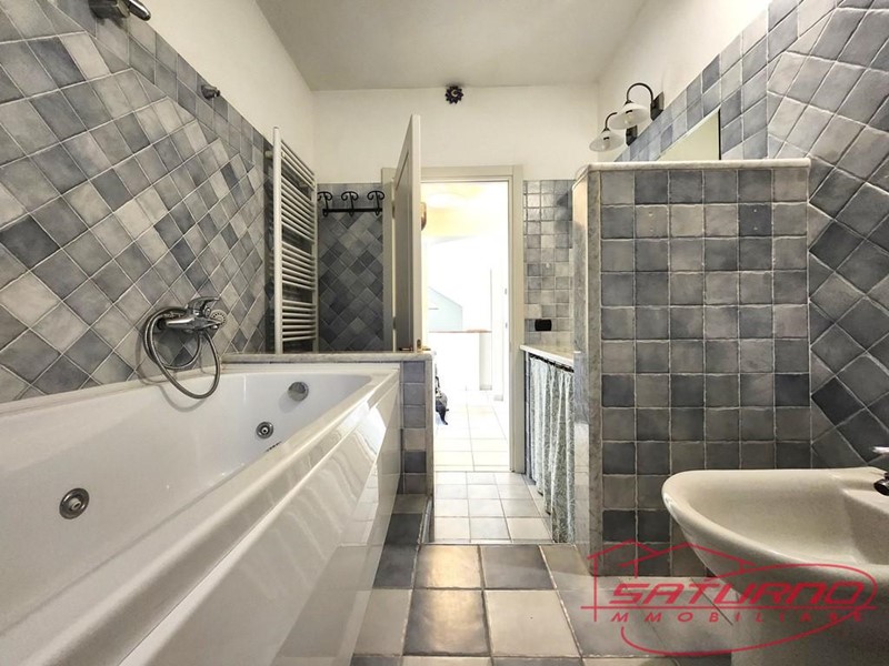 L'abitazione (185mq totali) si compone al piano terra di un'ampia zona living composta da soggiorno con camino, sala da pranzo con cucinotto, da cui si accede alla veranda esterna e al giardino, un vano pluriuso finestrato, un bagno con doccia e un piccolo ripostiglio. Al piano superiore troviamo due ampie camere matrimoniali, una camera con balconcino panoramico ed accesso ad un ripostiglio sottotetto, una stanza armadi finestrata e un bagno con vasca.