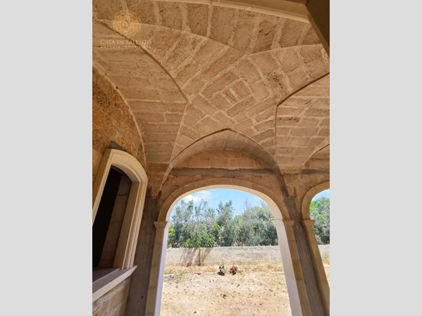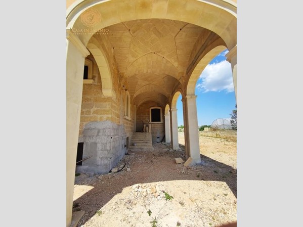 VENDESI a Montesano Salentino (LE), in zona periferica ma vicino a tutte le comodità , villa indipendente allo stato rustico suddivisa in 2 livelli di circa 560 mq. compreso di porticato esterno. Terreno agricolo di pertinenza di circa 3500 mq. La villa si presenta intonacata e pitturata esternamente, è caratterizzata da splendide volte a faccia vista a maltrotta, a squadro, a spigolo e a botte per il piano sottoposto, con rivestimenti in pietra leccese all’esterno, nessun impianto è stato predisposto ed entrambi i piani sono accessibili da scala interna coperta. La struttura si presta benissimo ad essere utilizzata sia come soluzione abitativa che come struttura ricettiva, grazie agli ampi spazi interni ed esterni. Pozzo artesiano e fossa biologica imhoff. Montesano Salentino è un comune italiano di 2.615 abitanti della provincia di Lecce in Puglia. Situato nel basso Salento, a 47 km da Lecce è attraversato dalla statale che collega Santa Maria di Leuca. Dal 2016 fa parte dell’associazione Borghi Autentici d’Italia. C.E.: immobile esente. PREZZO RIBASSATO DA 285.000 € A 259.000 €