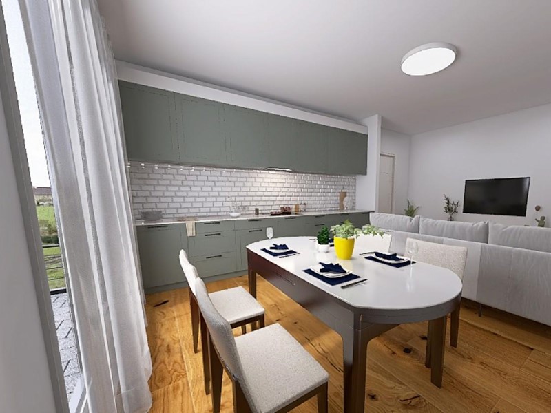 Appartamento N.3 : Superficie 85 mq + accessori. Soggiorno con angolo cottura, Camera matrimoniale, Camera, Bagno, Ripostiglio/Lavanderia, Terrazza, Balcone e Posto Auto. Euro 199.000