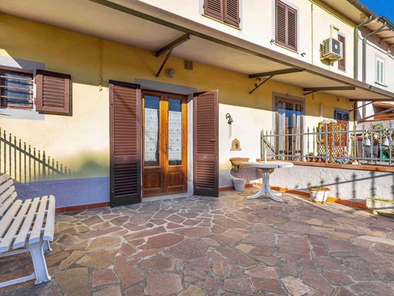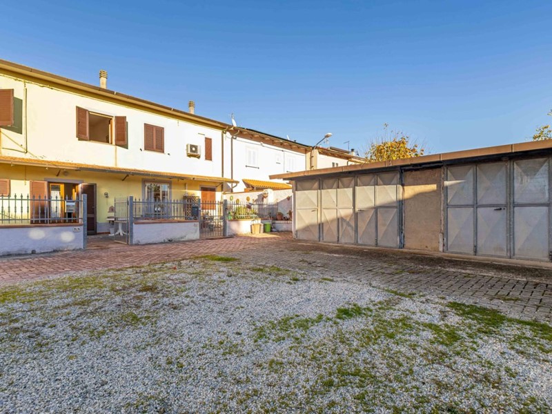 In contesto di corte tranquillo e ben curato proponiamo TERRATETTO CENTRALE corredato di resede e garage. All'interno della corte è possibile accedere con la macchina sia per fare carico/scarico che per parcheggiare di fronte al garage. Tarmite cancello pedonale accediamo all'interno della resede pavimentata privata. La soluzione è disposta su due piani con doppia esposizione fronte/retro. Al piano terra, varcata la porta di casa, ci accoglie una ampia zona giorno dal taglio moderno con cucina a vista. Allo stesso piano, divisa da una porta, è possibile accedere ad ulteriori due vani collegati tra di loro da un arco, utilizzabili come ulteriore zona soggiono o per chi avesse necessità come camera da letto grazie anche alla presenza di un ripostiglio sottoscala ad oggi usato come bagno di servizio. Dalla cucina, tramite scala interna, raggiungiamo il piano superiore composto da tre ampie camere da letto ( due matrimoniali e una singola), un ripostiglio dotato di scala retrattile per accedere al sottotetto ed il bagno finestrato. Completa il tutto il garage poco distante l'abitazione di circa 22 mq. La casa ad oggi si presenta in discerte condizioni necessitando solo di interventi di ammodernamento interni.