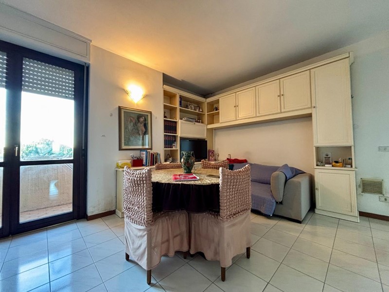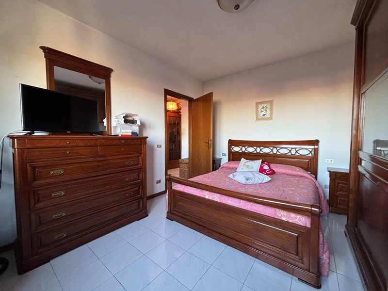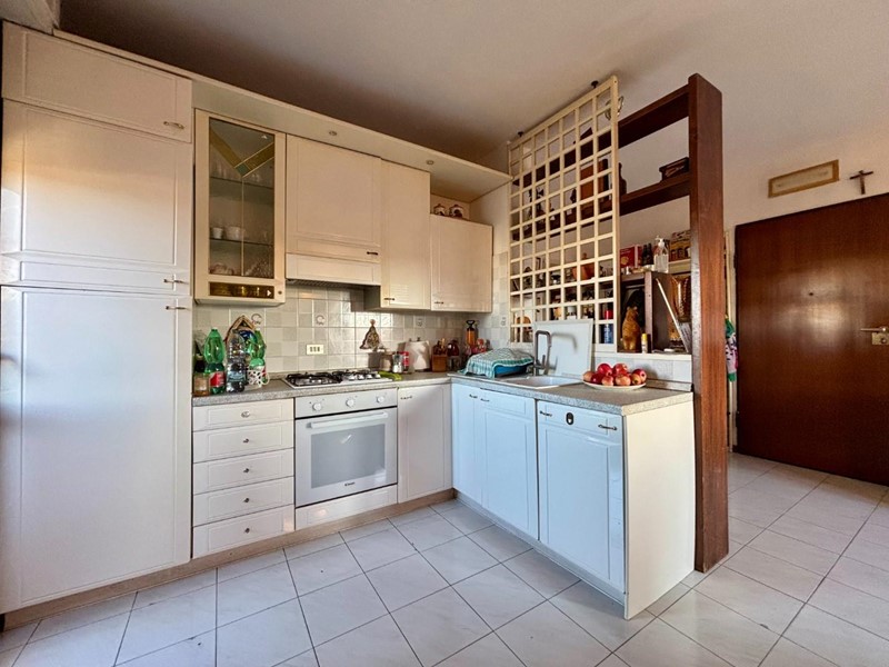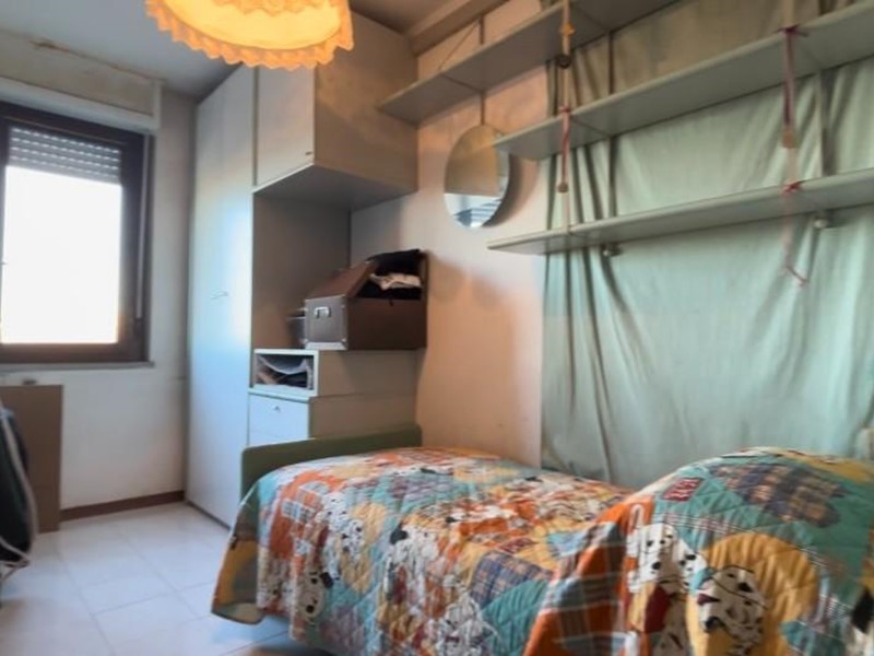 L’abitazione si compone di ingresso in zona giorno con angolo cottura e due balconi, disimpegno notte con armadio a muro uso ripostiglio, camera matrimoniale, cameretta, guardaroba/studio e bagno con finestra.