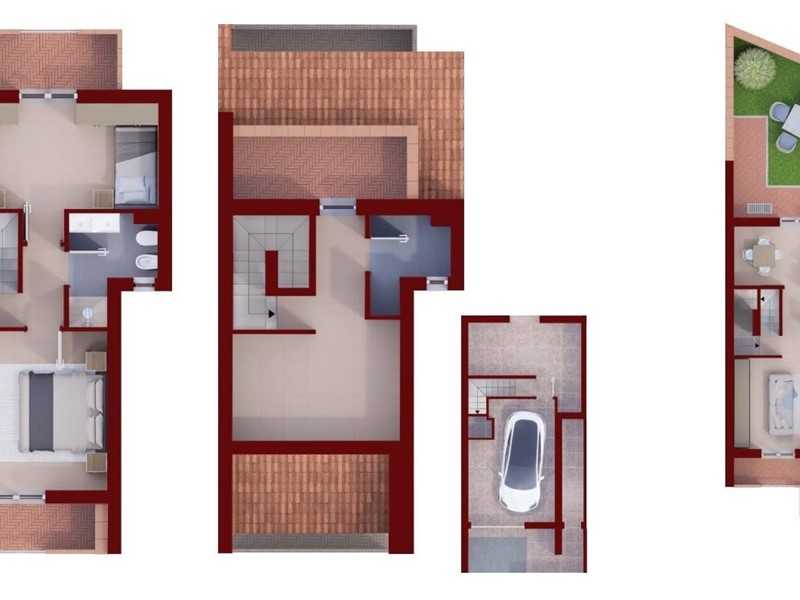 In una tranquilla zona residenziale di Firenze, proponiamo terratetto libero su tre lati, disposto su tre piani fuori terra oltre piano seminterrato.