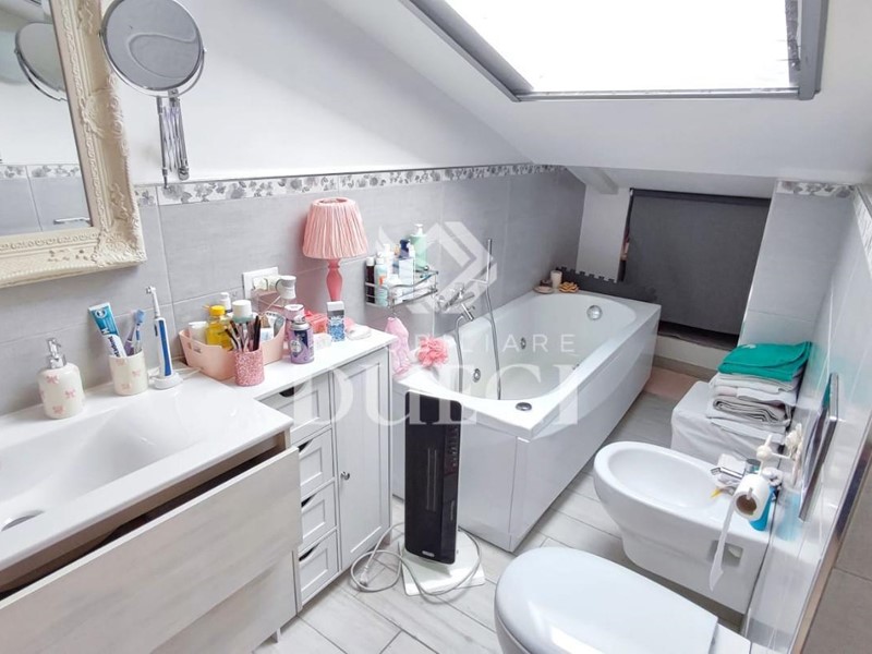 La mansarda, raggiungibile sia dall’interno con una scala a chiocciola che dall’esterno direttamente dal vano scale condominiale con il suo portoncino blindato, è un ambiente unico con angolo cottura e bagno, offre la possibilità di essere sfruttata anche come bilocale da mettere a reddito oppure ideale come zona relax, studio o per ospiti. La proprietà si completa di un garage e posto auto il tutto si presenta in ottime condizioni.