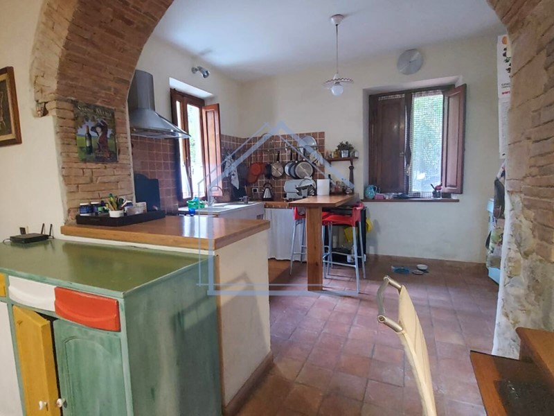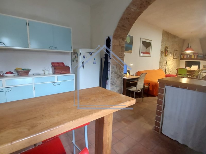 L'ingresso si apre direttamente sull'ampio open-space che ospita la sala e la cucina. L'ambiente è caratterizzato dalla presenza di un camino funzionante e stufa a pellet.
