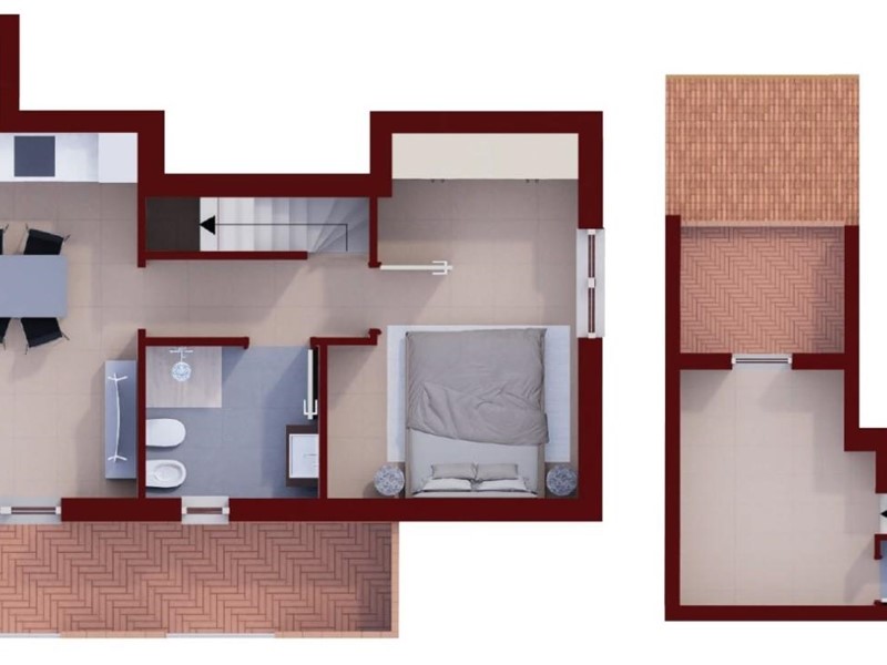 ● Zona notte comprende, una camera matrimoniale e un bagno finestrato.