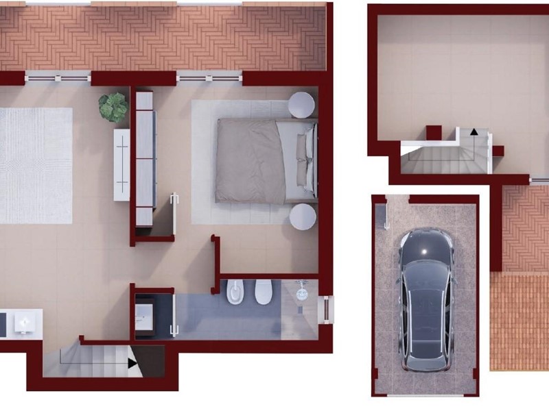 ● Zona notte comprende, una camera matrimoniale con accesso al terrazzo e un bagno finestrato.