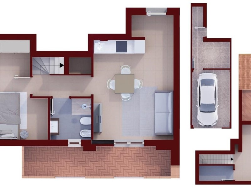 Al secondo piano mansardato troviamo ampio vano con balcone e vano con predisposizione per una lavanderia.