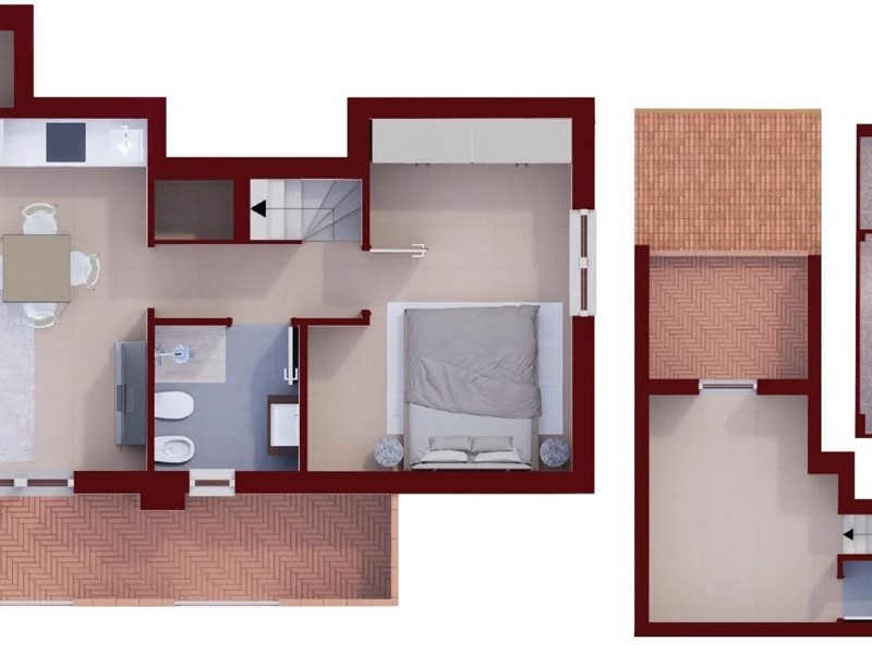 ● Zona notte comprende, una camera matrimoniale e un bagno finestrato.