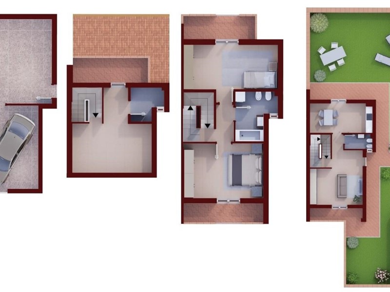 In una tranquilla zona residenziale di Firenze, proponiamo terratetto libero su tre lati, disposto su tre piani fuori terra oltre piano seminterrato.