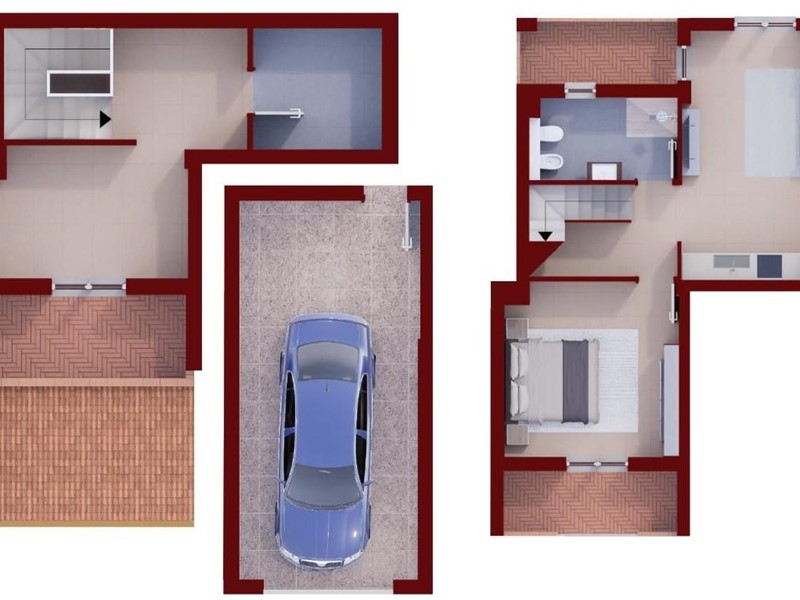 Al secondo piano mansardato troviamo ampio vano con balcone e vano con predisposizione per una lavanderia.