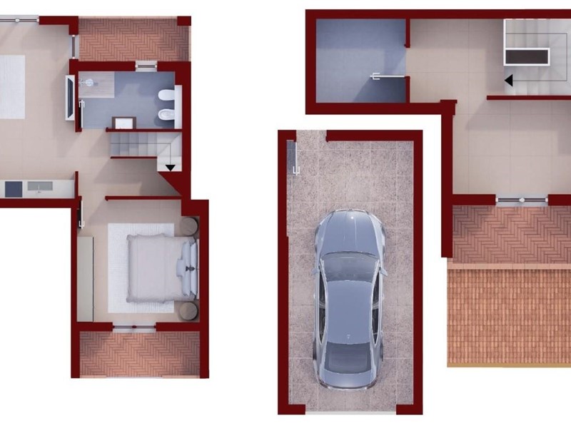 Al secondo piano mansardato troviamo ampio vano con balcone e vano con predisposizione per una lavanderia.