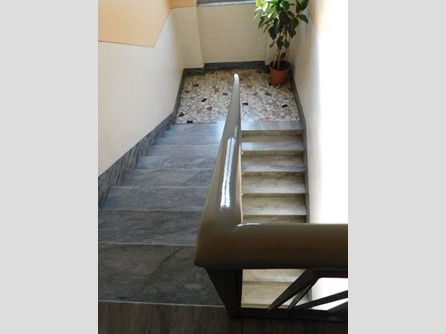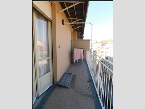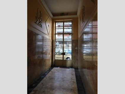 Alloggio al piano sesto (7° f. t.) composto di: ingresso/disimpegno, cucina, due camere, servizio igienico, ripostiglio e due balconi (uno verso cortile e uno verso la via pubblica) e cantina al piano interrato.